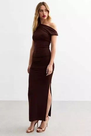 棕色扭肩及地长裙(图片:新面貌)