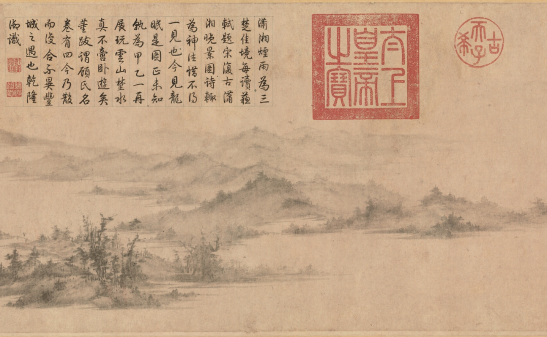 《潇湘卧游图》则是现存宋代水墨山水中最杰出的作品之一,亦曾与顾恺之《女史箴图》等并列为乾隆皇帝收藏的四大名卷。