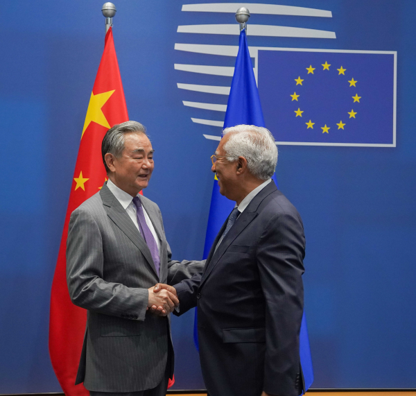 王毅说,习近平主席今年初同主席先生通电话,拉开了中欧庆祝建交50周年序幕。双方同意应坚持伙伴定位、开展互利合作、维护多边主义、妥处分歧摩擦,为中欧关系发展明确了方向。中国视欧洲为多极世界中的重要一极,对欧政策保持连续性稳定性。无论欧洲处于顺境还是逆境,中方始终支持欧洲推进一体化,乐见欧盟加强战略自主,在国际舞台上发挥更大作用。中方愿同欧方加强沟通协调,筹备好新一次领导人会晤,为中欧全面战略伙伴关系注入新内涵、开辟新前景。