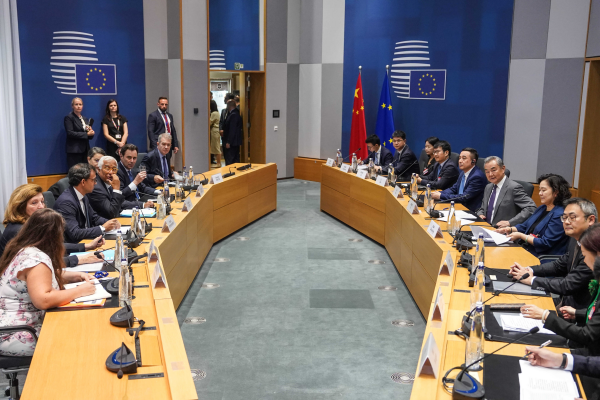 当地时间2025年7月2日,欧洲理事会主席科斯塔在布鲁塞尔会见中共中央政治局委员、外交部长王毅。