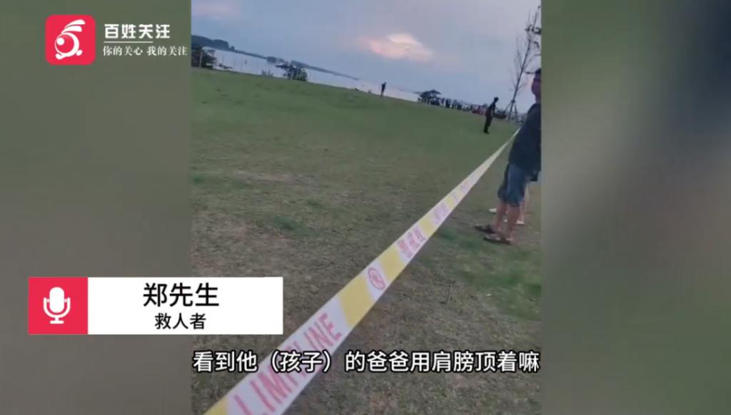救人者郑先生称,事发时,孩子父亲用肩膀奋力托举儿子约一分钟,最终因体力不支沉入水中。