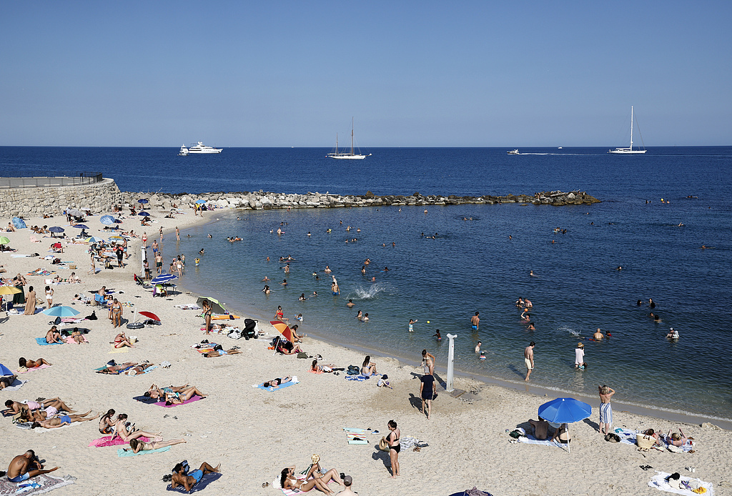 当地时间2025年7月2日,法国南部昂蒂布,人们在海滩上享受阳光。当日昂蒂布气温高达34摄氏度。