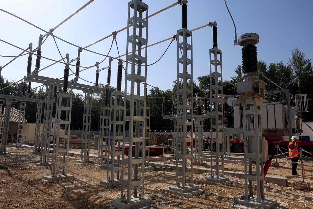 当地时间2025年7月1日,法国西南部蓬皮尼亚克,一名法国电网公司(Enedis)员工在高温天气中安装一台新的变压器。