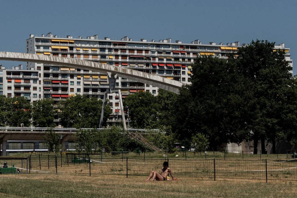 当地时间2025年7月1日,法国巴黎,一名居民在热浪中享受日光浴。
