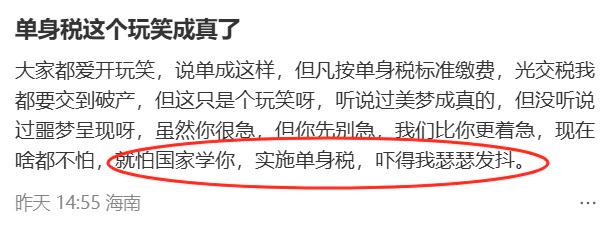 要我说,与其叫 " 单身税 ",不如叫 " 无孩税 "。反正结了婚却没生孩子的人也享受不到。