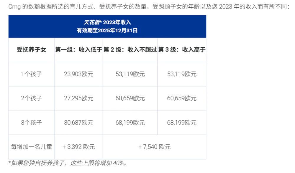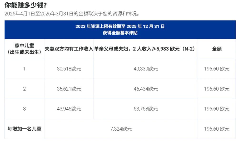 如果父母选择停止或减少工作,把更多时间用来抚养孩子(3 岁以下),还可以获得教育福利。