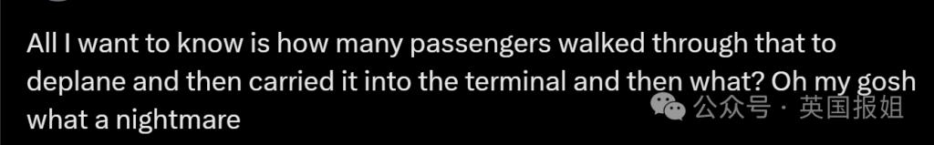 " 我只想知道有多少乘客走过污物下飞机,然后把行李带进航站楼,然后再怎么办 ... 真的是一场噩梦 ..."