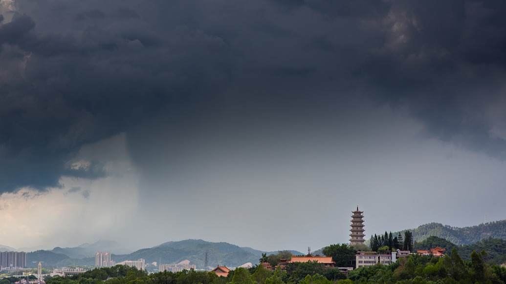 2025年6月11日,广东梅州,台风来临前强对流天气下的城区。视觉中国图据中央气象台网消息,今年第1...