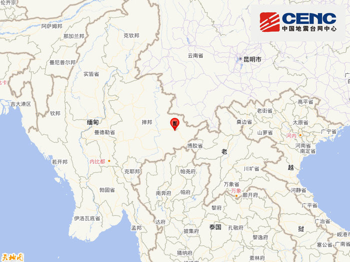 中国地震台网正式测定:06月03日21时28分在缅甸(北纬21.23度,东经99.54度)发生4.1...