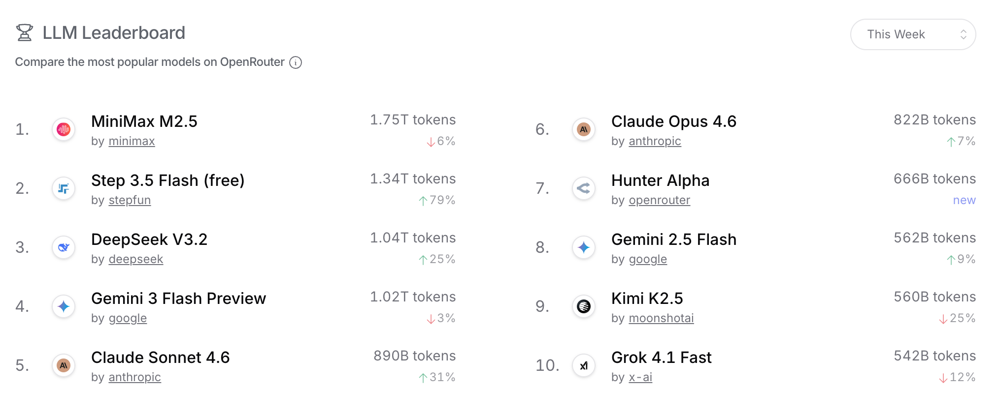 3月16日消息,全球最大AI模型API聚合平台OpenRouter的最新周度(3月9日至3月15日)...