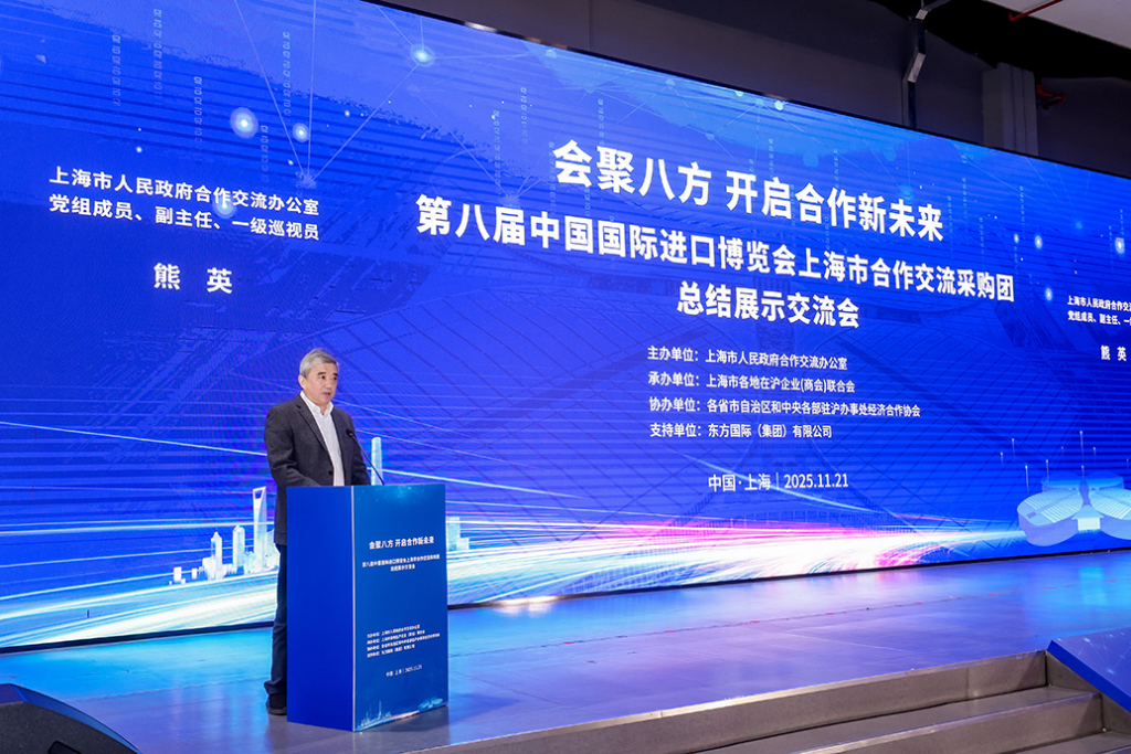活动现场上海市政府合作交流办供图11月21日下午,第八届中国国际进口博览会上海市合作交流采购团总结展...