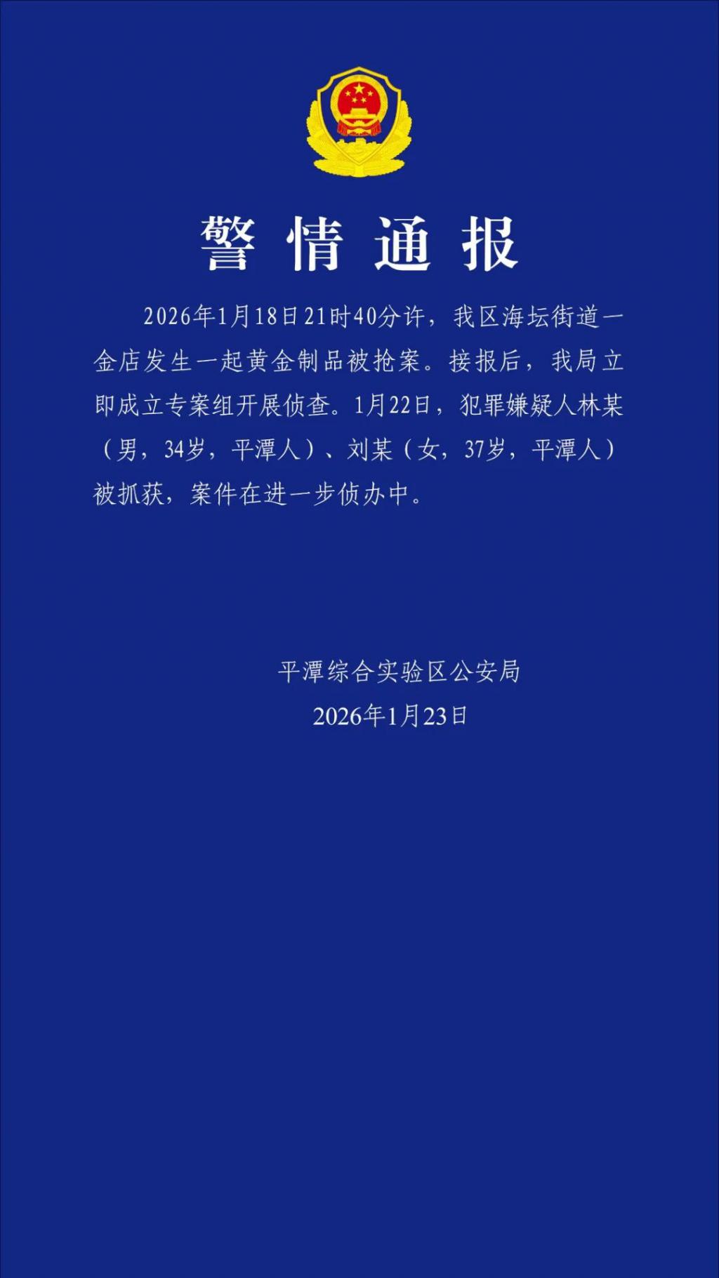 • 两人抢金店被抓,监控画面曝光!福建警方通报