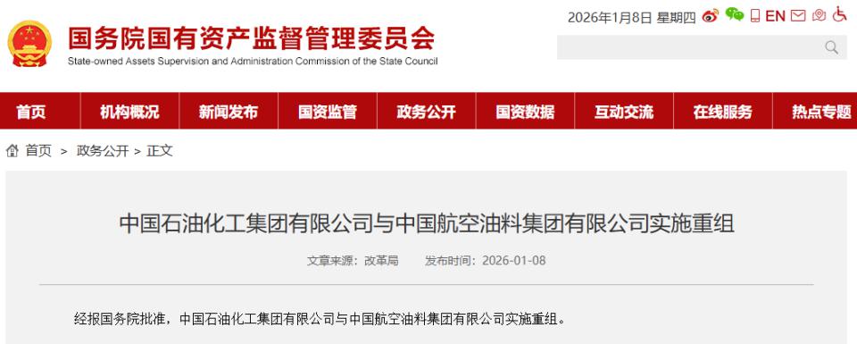 经报国务院批准,中国石油化工集团有限公司与中国航空油料集团有限公司实施重组。...
