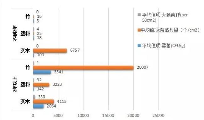 用了2年以上的菜板,在菌落总数、霉菌和大肠菌群数方面,比使用不到2年的明显更多[1]。