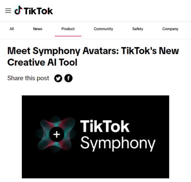 去年,TikTok搞了个叫Symphony Digital Avatars的广告工具,就是用AI生成的数字人,来打广告。