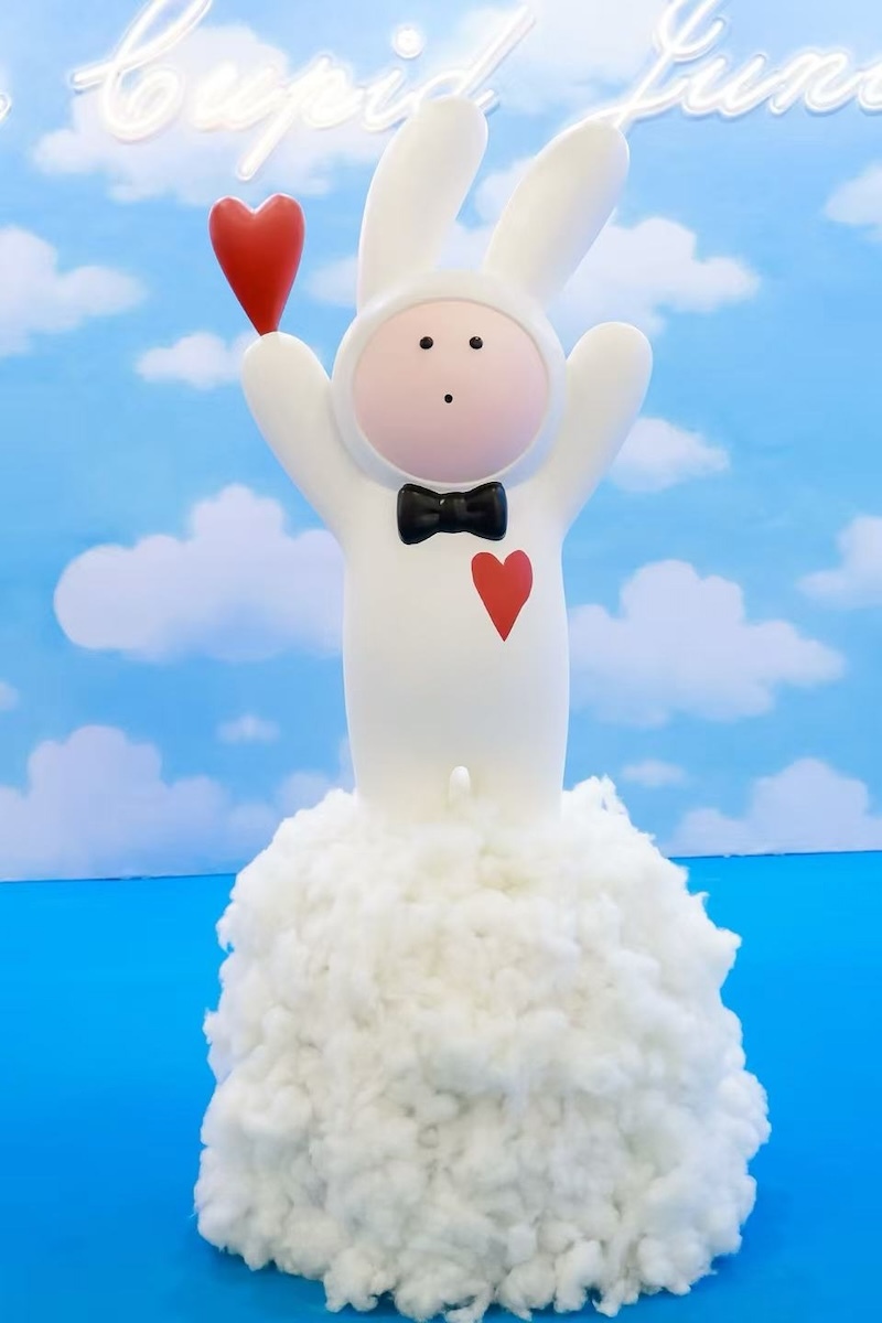 除了生活美学,此次展会也意在探索艺术与潮流、科技、公益、商业的融合,打造多维度跨界特别项目专区。展览的另一大亮点是集结了近60家潮流插画艺术机构及艺术家作品的特展。主办方为此推出了“ART PLUS艺术上海·格瑞潘特”插画独立品牌。进入该区域,最亮眼的是不二兔,该艺术形象是插画家Echo为作家安东尼的散文集《陪安东尼度过漫长岁月》创作的角色,是早期治愈系艺术形象的代表。