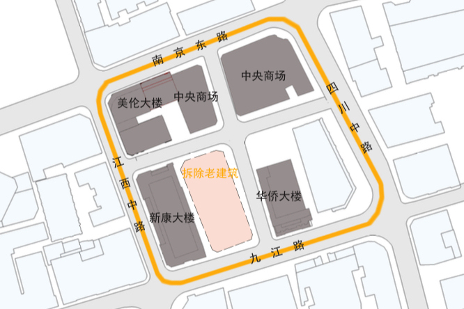 外滩·中央四组历史建筑及两条十字形内街平面图。图片来源:华东建筑设计研究院
