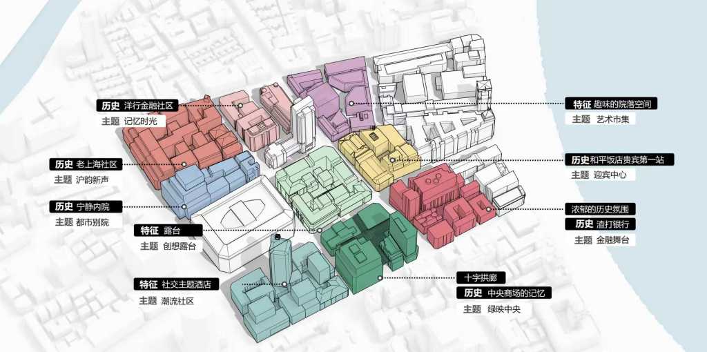 外滩第二立面责任建筑师团队为各街坊制定的主题。图片来源:珮帕施规划建筑设计事务所
