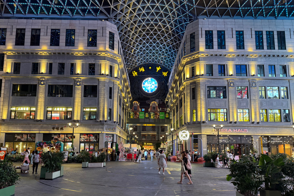 外滩·中央的美伦大楼就位于第一盏弧光灯亮起的路口,经过多年改造,项目已发展为一个兼具历史纵深与活力的叙事性空间:2017年,外滩·中央项目一期中央商场和美伦大楼正式开业,位于美伦大楼4楼的美国林肯爵士乐上海中心同期开业;2021年,项目二期华侨大楼、新康大楼地上10层和地下5层、中庭近4000平方米的玻璃穹顶完工,成为南京东路百余年来首创景观;2023年,“最美”政务服务中心在新康大楼亮相。