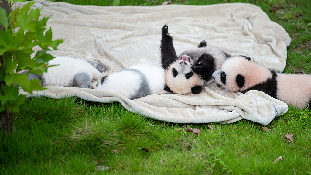 城事|成都熊猫基地幼崽组团日光浴,“奶团子”萌翻现场