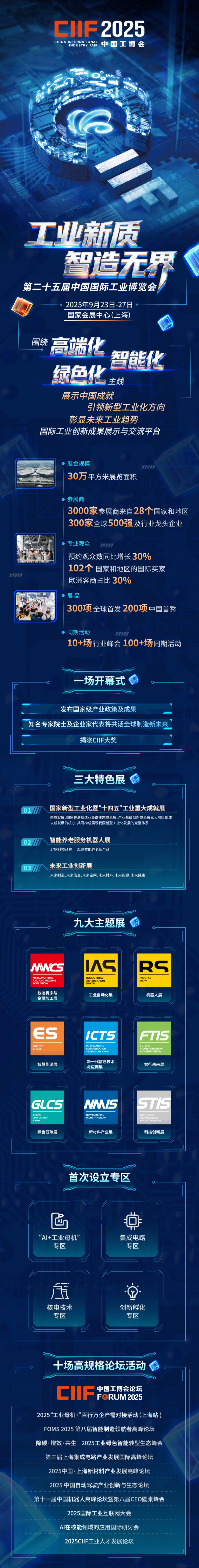 同时,创新“1+3+9+10”框架体系,即1场高规格开幕式,国家展、养老机器人展及未来工业创新展3大特展,9个行业主题展,10场重点行业峰会,打造中国工业的4S店。本届工博会首次设立“AI+工业母机”专区、集成电路专区、核电技术专区、创新孵化专区。