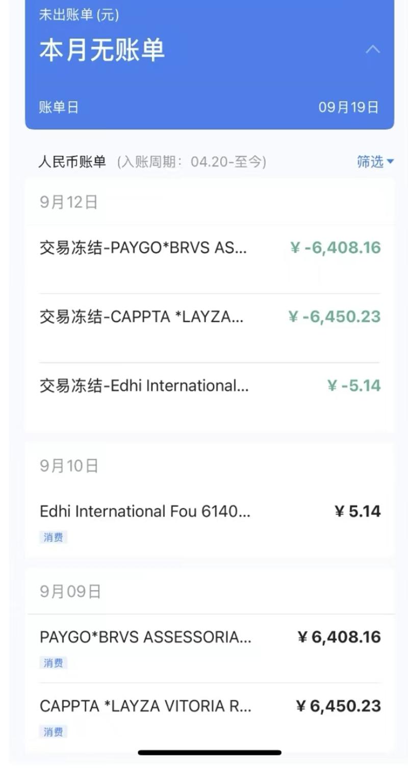 贝壳财经记者注意到,另有持卡人发帖称,曾于 8 月 18 日致电浦发银行客服要求注销红沙宣卡,处理完 App 立刻就显示卡已经失效,但却在 9 月 11 日收到信用卡在巴西被盗刷的短信提示。
