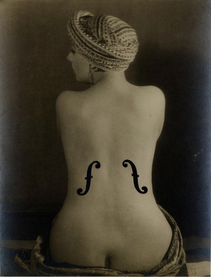 曼·雷的《安格尔的小提琴》,1924年。这件作品曾在拍卖会上以约1240万美元的价格成交,图中人物是曼·雷的爱人琪琪·德·蒙帕纳斯(本名爱丽丝·普林)