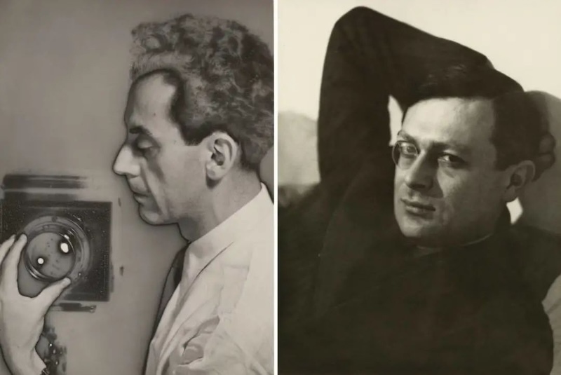 左:曼·雷,《手持相机的自拍肖像》,1931; 右:曼·雷,《特里斯坦·特萨拉》
