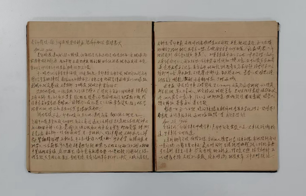 从外观来看,这份日记为一本装订成册的黑底墨绿色边笔记本,纸张因年代久远已明显泛黄,封面与内页的磨损痕迹,无声诉说着它跨越近一个世纪的岁月沉淀。