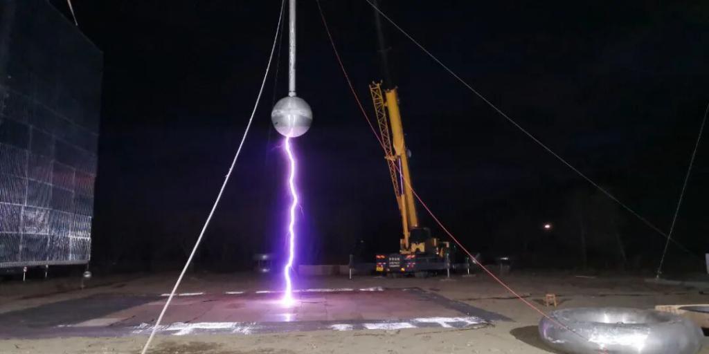 在海拔高达 3400 米的云南迪庆香格里拉红坡村,南方电网公司科研人员开展放电试验,掌握换流站中高压设备在高海拔特高压直流运行电压下的安全距离底线。图源:南网科研院
