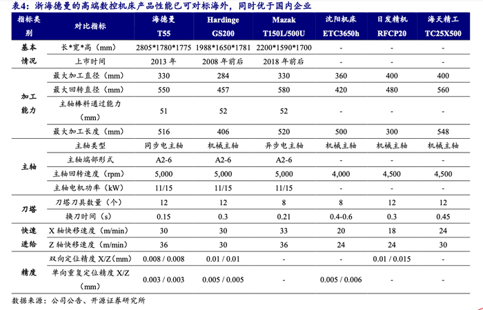 根据开源证券研报,浙海德曼在其高端数控机床产品性能上展现出一定的技术积累,部分指标已达到甚至超越海外部分主流厂商水平,并优于部分国内企业。