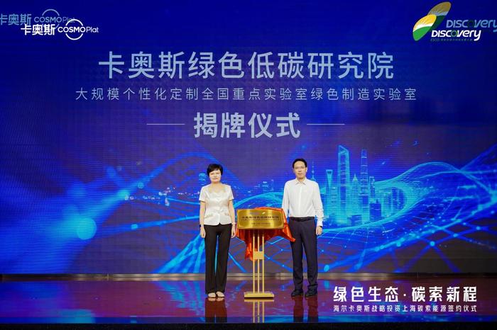 活动中,卡奥斯绿色低碳研究院(以下简称“研究院”)正式揭牌。该研究院将结合海尔卡奥斯的工业互联网平台能力和上海碳索能源的能碳管理技术能力,落地上海。