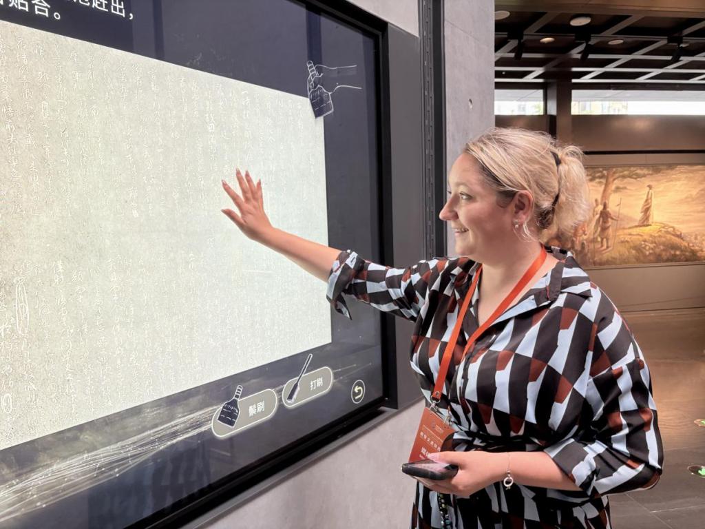 俄罗斯网红博主在西安碑林博物馆体验数字拓印