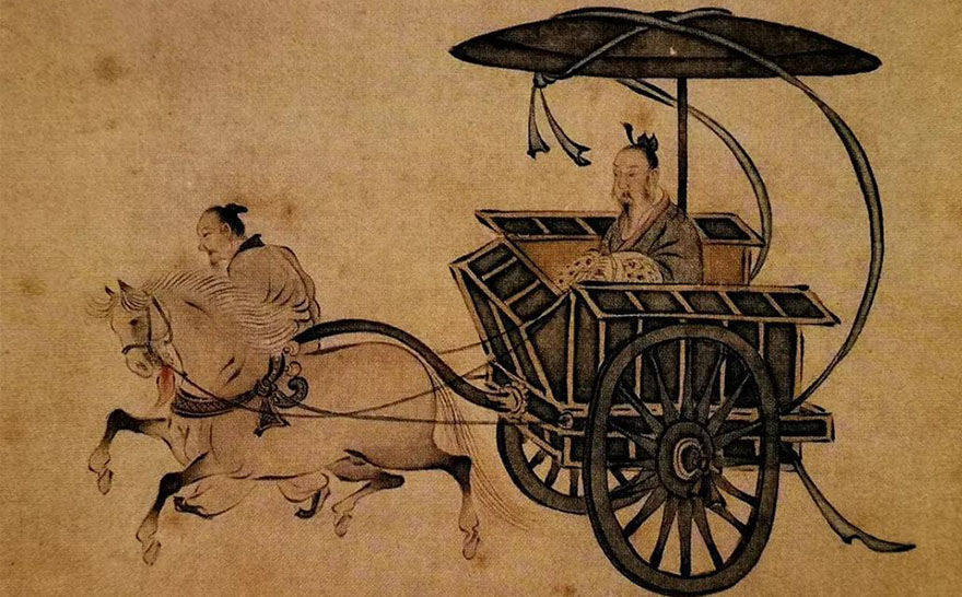 图四 南宋马和之《诗经图》(《唐风·羔裘》局部)所见车盖
