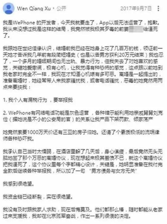 2017 年 9 月 7 日,WePhone 创始人苏享茂跳楼自杀。(图 / 微博截图 @苏享茂的姐姐)