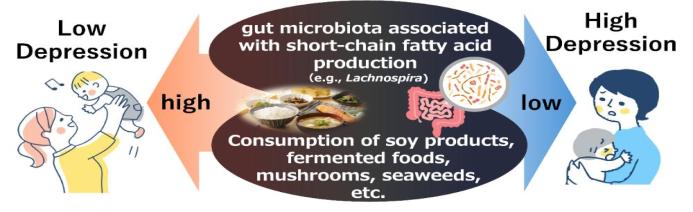 此外,饮食中摄取豆制品、纳豆、酸奶、海藻、蘑菇和粗粮较多的研究对象,其产后抑郁症状较轻、身体状况更好,肠道内与短链脂肪酸产生有关的细菌相对量较多,而埃希氏菌等病原菌相对量较少。