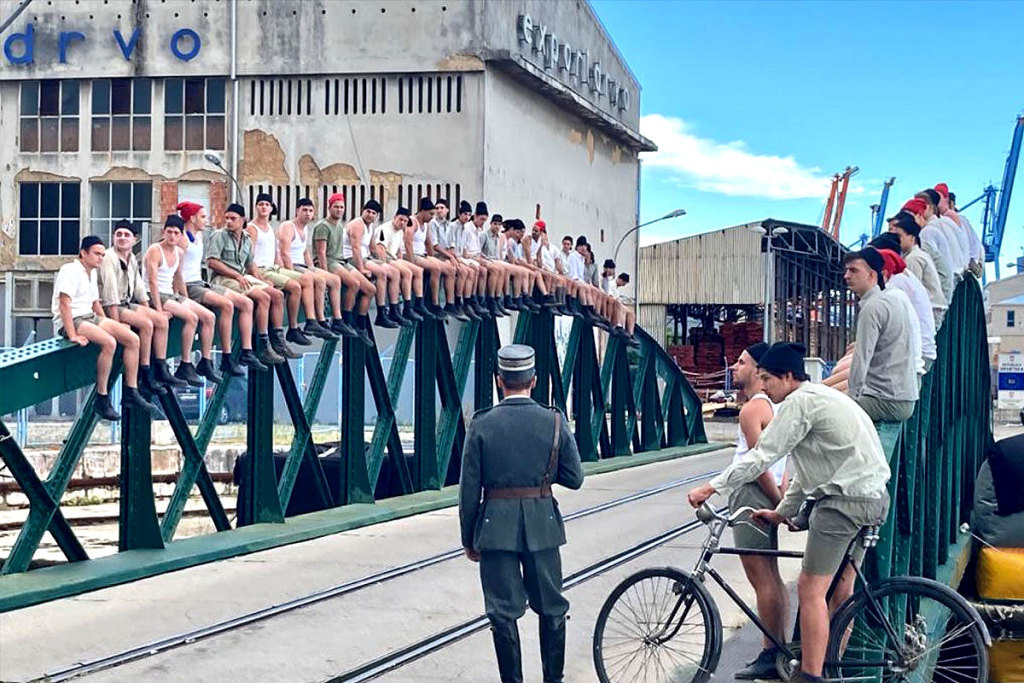 电影运用了极具开创性的手法构建起整个行动,尽管本片仍然遵循以时间为主的线性叙事,但大量历史影像搭配着市民的共同参与创作,从而形成了多重的叙事主体。影片反而精准地揭示了历史影像的空洞性,从而达成一种反讽的效果。由于同一场域在过去与当下有不同的名称,下文中将以“里耶卡”指代当下的城市,而“阜姆”则指代过去的城市,以此区分历史影像与当下演绎空间。
