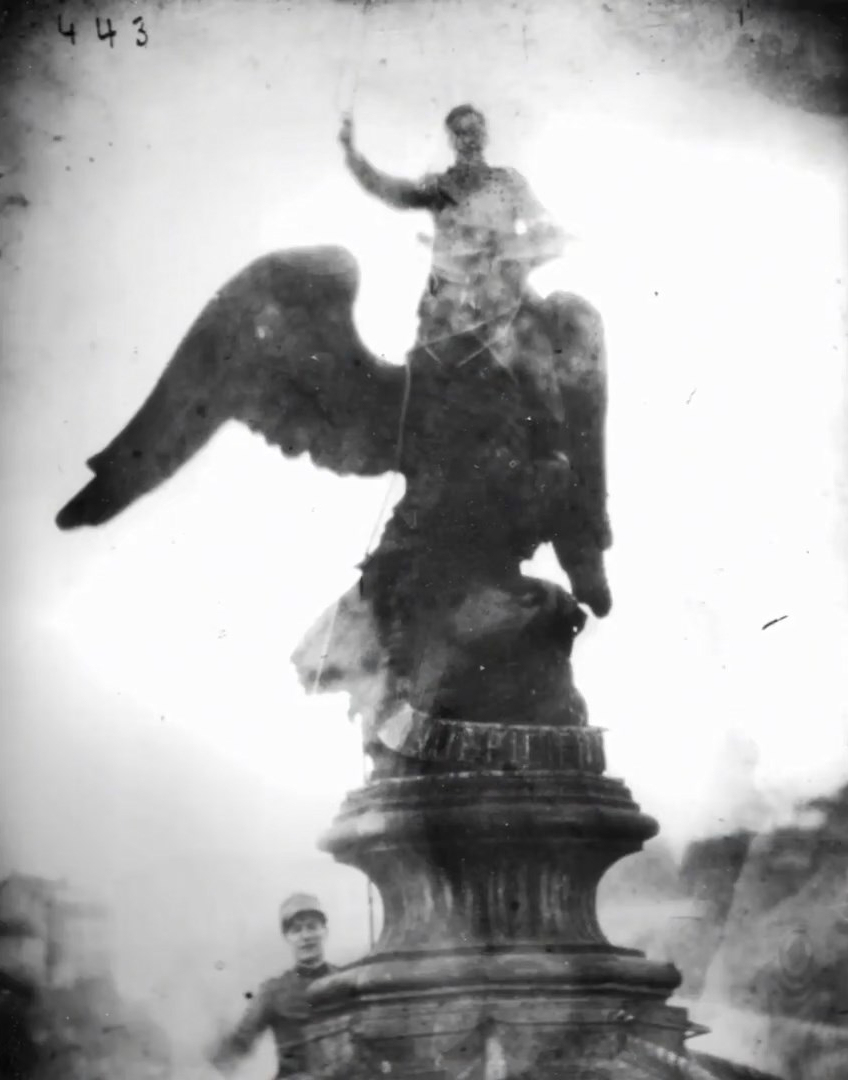 不难发现,在上述一切呈现的先决条件中,当代表达和画面并置的空间都高度依赖于大量历史照片和影像的留存。邓南遮很早便察觉到影像媒介的重要性,也明白该如何借助其传播政治理念。1919年时,摄影技术还尚不常见,邓南遮却主动邀请了大量摄影师为他记录,导演伊戈尔称其是“最早真正理解媒介的力量以及如何运用媒介来呈现政治理念的人之一”。