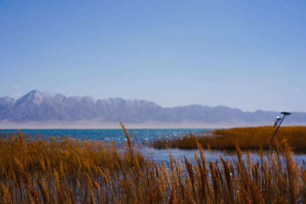 图7 酒泉市阿克塞苏干湖候鸟自然保护区,调查组成员兰州大学历史文化学院硕士杨璐摄