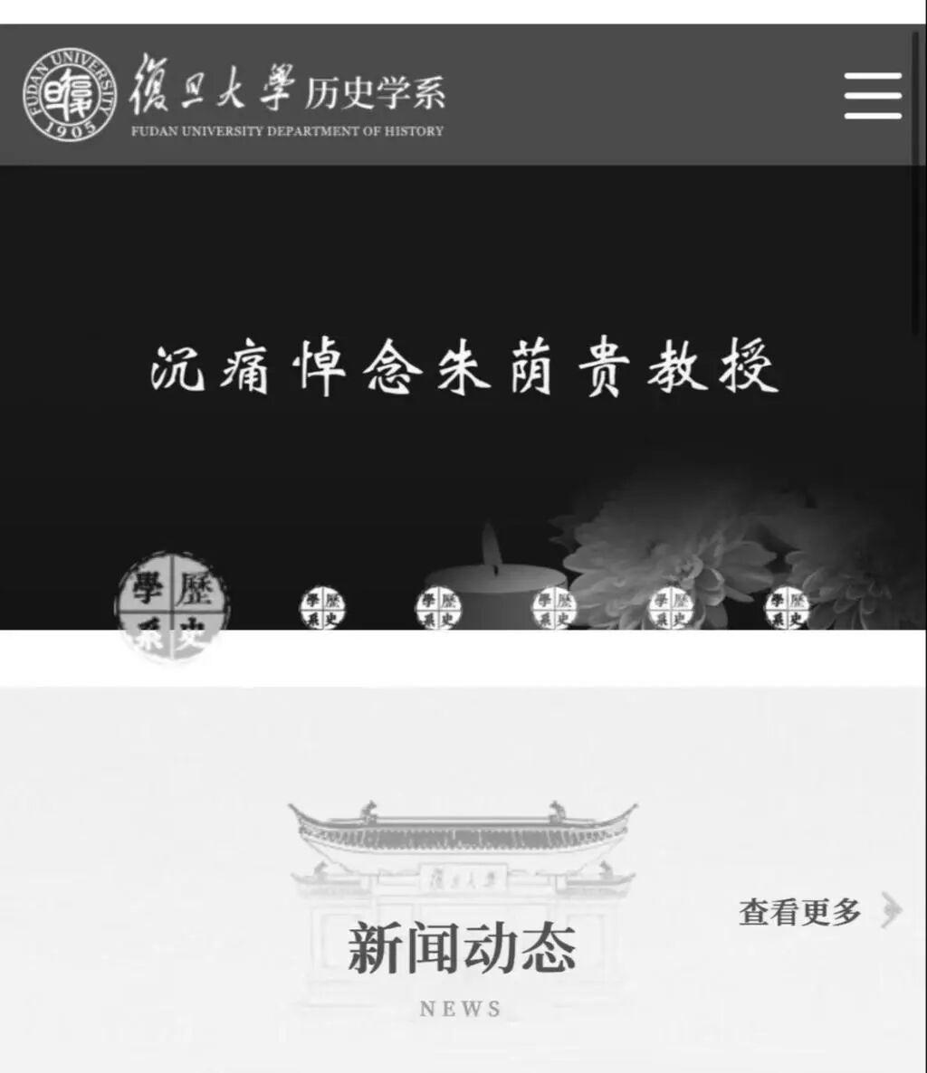 9 月 24 日,记者发现,复旦大学历史学系官网已变为黑白色,悼念朱荫贵教授。