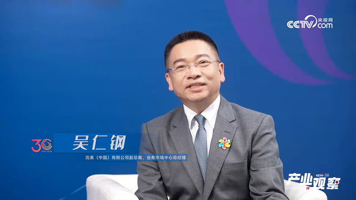央视网《产业观察》栏目与完美公司副总裁吴仁钢展开对话。吴仁钢认为作为大健康产业及健康生活方式的先行者与推动者,“三个不变”是完美公司的核心发展理念,完美公司始终以 “创新产品、普及健康、投身公益” 的实际行动,践行“健康中国”的担当。面对产业新赛道、新业态的挑战,他围绕“创新”要点详细介绍了完美公司的核心思路。
