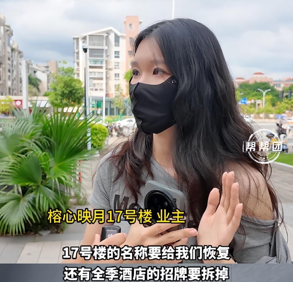 业主称,今年 8 月,全季酒店对 17 号楼门面进行装修,原本标有 " 榕心映月 17 幢 " 的入口被全季酒店装修覆盖,导致客户前来时常找不到入口,迷失方向。