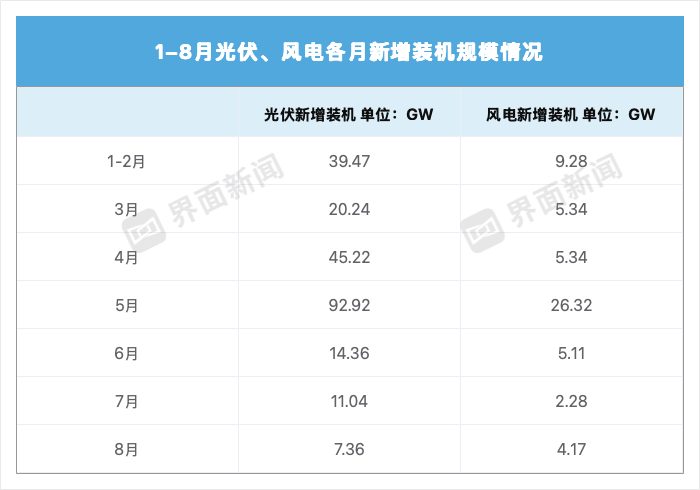 截至今年8月底,风光累计装机为17亿千瓦,距离上述36亿千瓦的目标,还有19亿千瓦的增长空间。