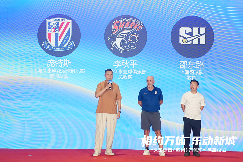 上海久事篮球俱乐部总教练李秋平、上海申花足球俱乐部青训总监庞特斯一起参与活动。