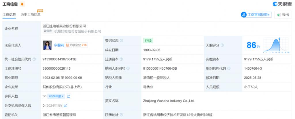 此外,天眼查信息显示," 娃小宗 " 的商标目前归宏胜集团所有,商标申请日期显示为 2025 年 5 月。