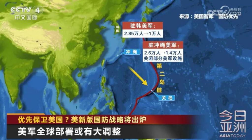 减少驻韩美军和驻冲绳美军人数,同时将驻冲绳的部分美军部队转移到日本其他地方和第二岛链,韩国和冲绳的防御任务将主要由韩军和日本自卫队承担。有台湾专家认为,这一部署变化意味着美国以后可能弃守 " 第二岛链 " 以西。