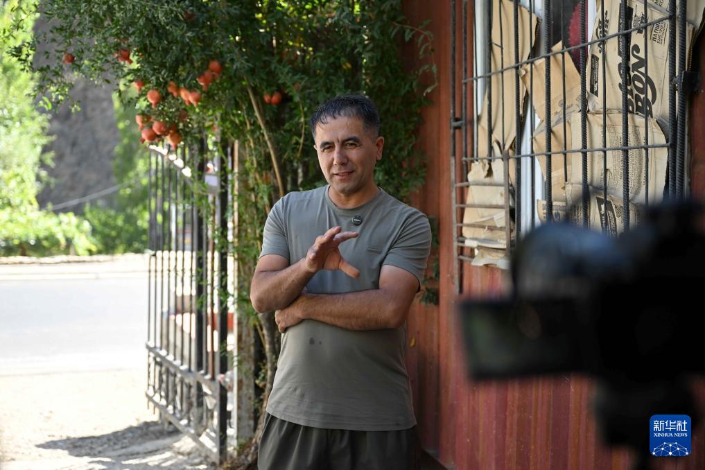 9 月 11 日,在塔吉克斯坦卡拉依洪姆村附近,村民基什瓦尔接受新华社记者采访。 新华社记者 李任滋 摄