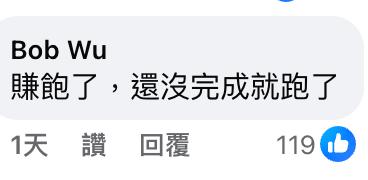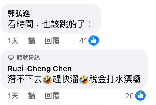 岛内网友也在相关帖文下留言痛批:" 看时间,也该跳船了!"" 潜不下去了,赶快溜,税金打水漂了!"" 赚饱了,没完成就跑了?!"