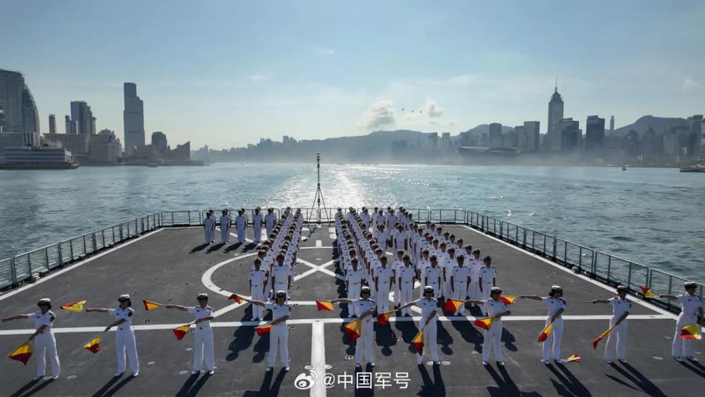首页 > 学习 海军官兵在香港摆出76字样 今天上午,正在执行远海综合实习访问任务的海军 83 舰编队,抵达香港特别行政区。驻香港部队代表在昂船洲军营码头为舰艇编队举行了欢迎仪式。在香港停留期间,戚继光舰和沂蒙山舰将于 9 月 30 日至 10 月 2 日组织开展具有海军特色的系列舰艇开放交流活动,并于 10 月 1 日举行庆祝新中国成立 76 周年升旗仪式。驻港部队将组织香港民众、青少年学生等群体上舰参观,体验舰艇官兵生活,了解感受新时代人民军队的建设发展成就。(尹相琨 陈梦曦 李大公)