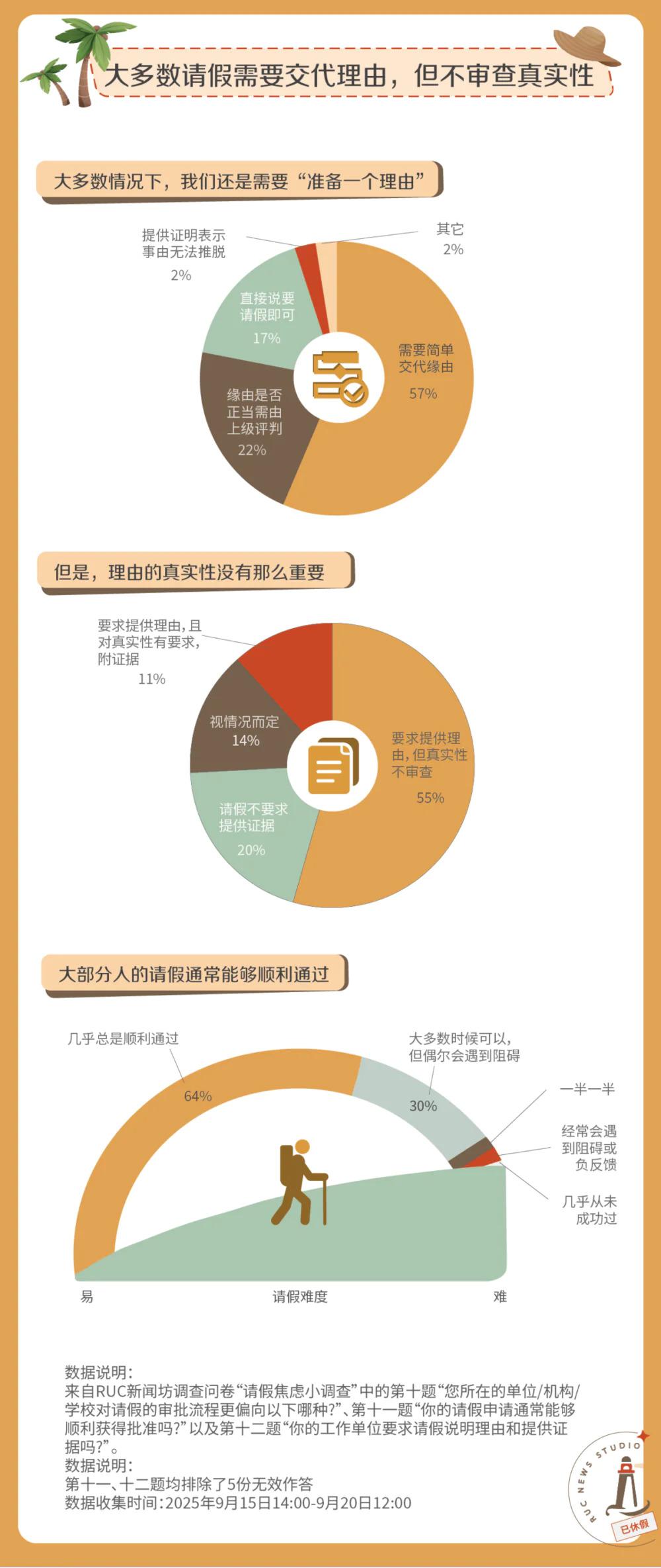 为何在不知不觉中,请假让人越来越焦虑?哪些请假理由被视为充分合理?假期为何不能 " 应休尽休 "?带着这样的困惑,我们回收了 408 份关于 " 请假焦虑 " 的有效问卷,并和 7 位有请假焦虑的人进行了交流。